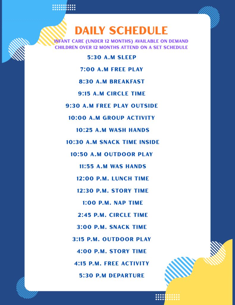 • Days & Hours Attend only on enrolled days; extra hours possible if space allows (fees may apply).