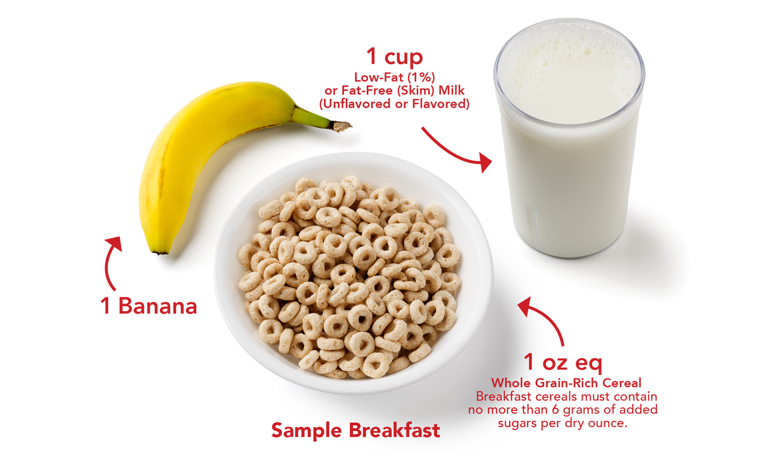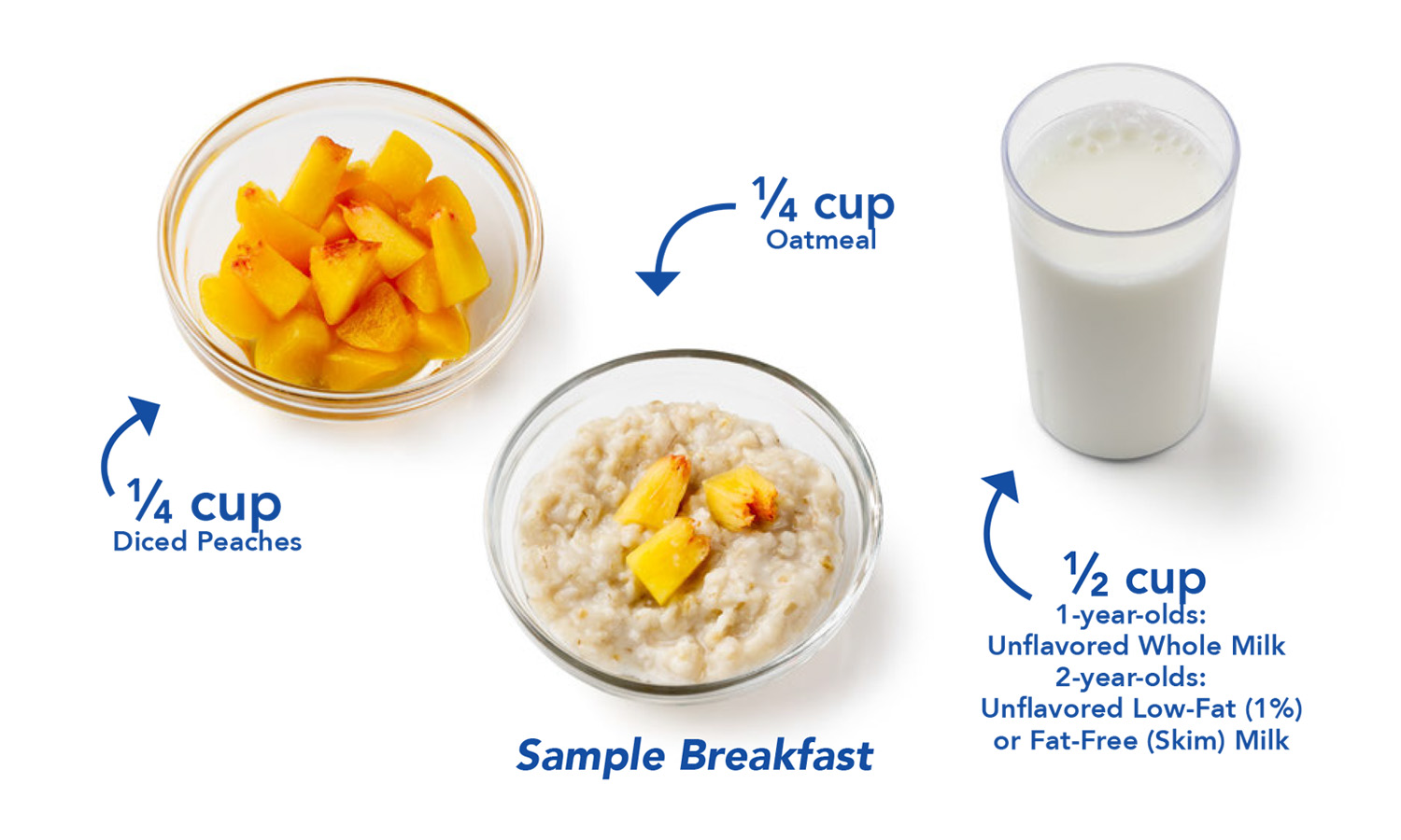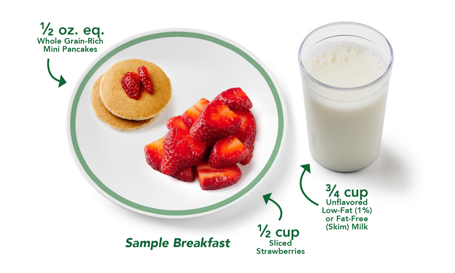 | MIlk | 1/2 Cup Whole | 3/4 Cup Low-Fat or Fat-Free | 1 Cup Low-Fat or Fat-Free | |
